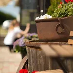 Οι επισκέπτες μπορούν ν' απολαύσουν θέα σε κήπο από τα παράθυρά τους.